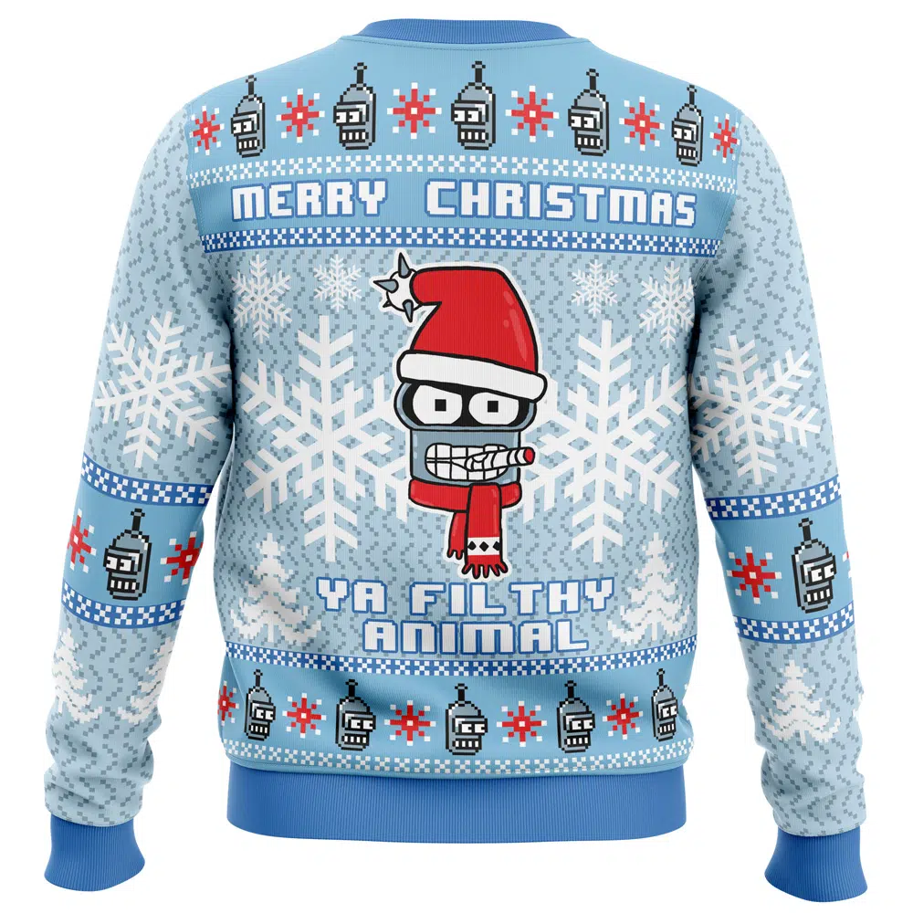 Buildercar – Merry Christmas Ya Filthy Animal Futurama Ugly Christmas Sweater Turn Heads This Holiday with Anime Ape’s Exclusive Ugly Christmas Sweater