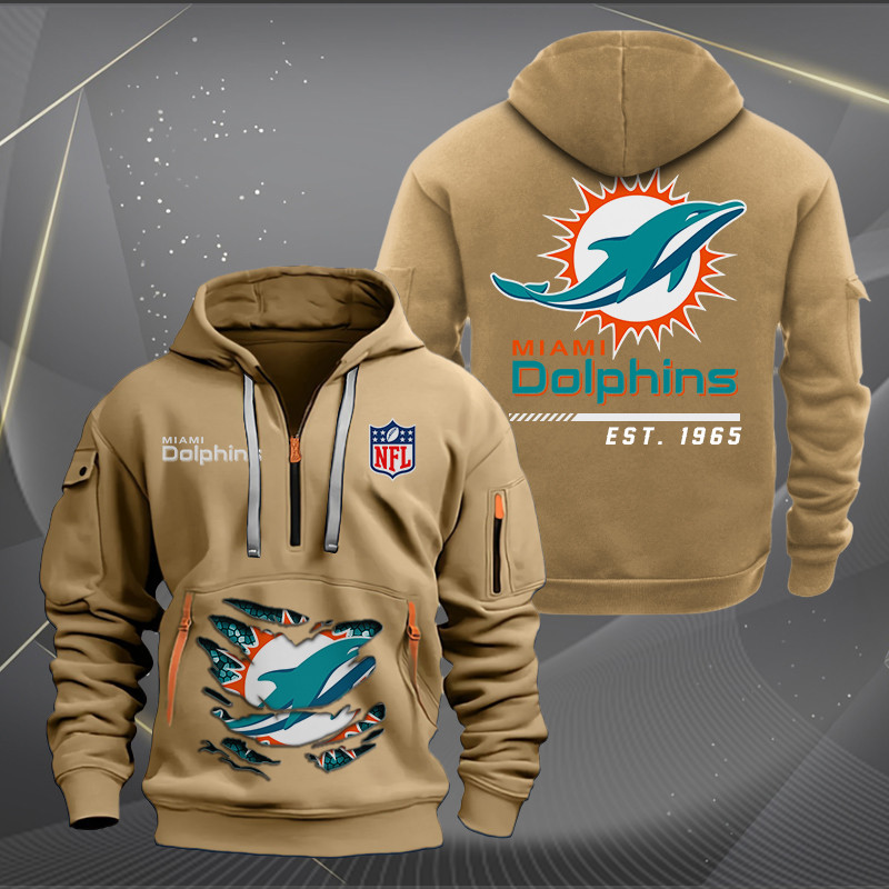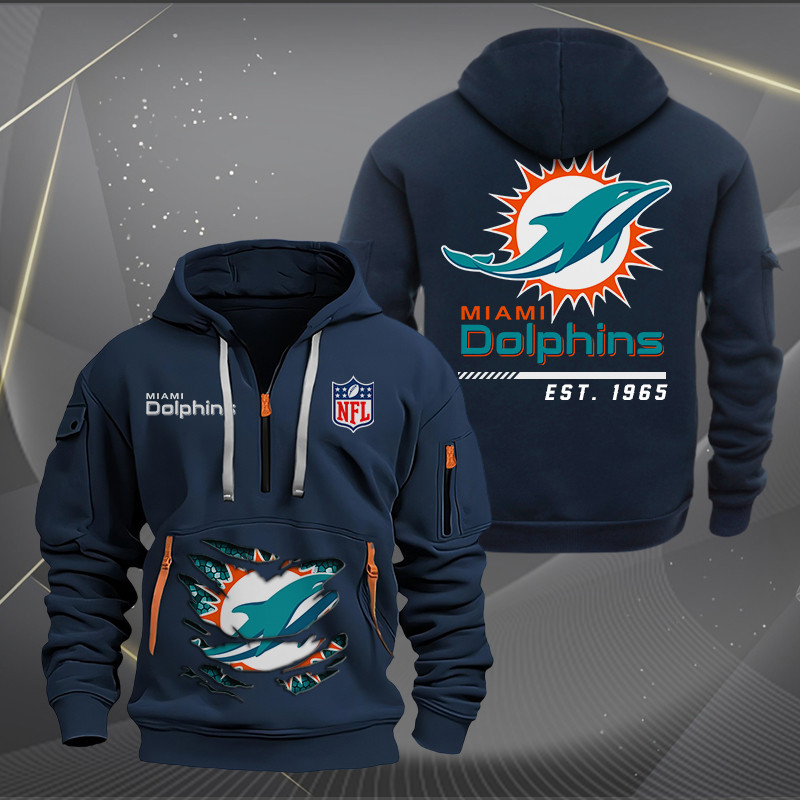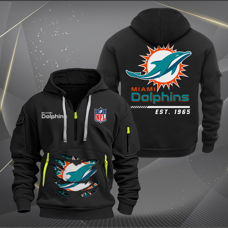 Miami Dolphins Monster Scratch 2 Logo NFL Quarter Zip Hoodie