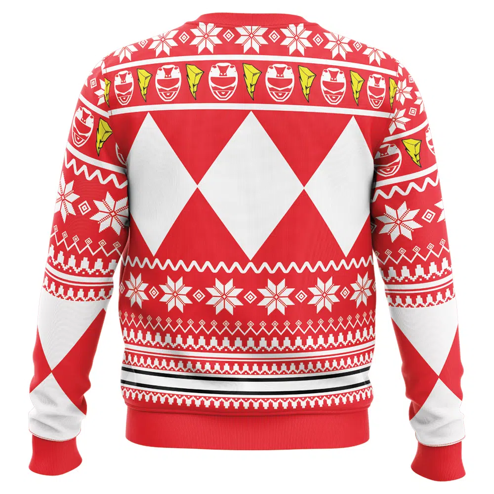 Buildercar – Mighty Morphin Red Ranger Power Rangers Ugly Christmas Sweater Turn Heads This Holiday with Anime Ape’s Exclusive Ugly Christmas Sweater