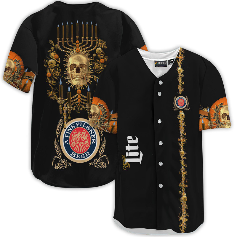 Miller Lite Golden Skull And Pumpkin Baseball Jersey