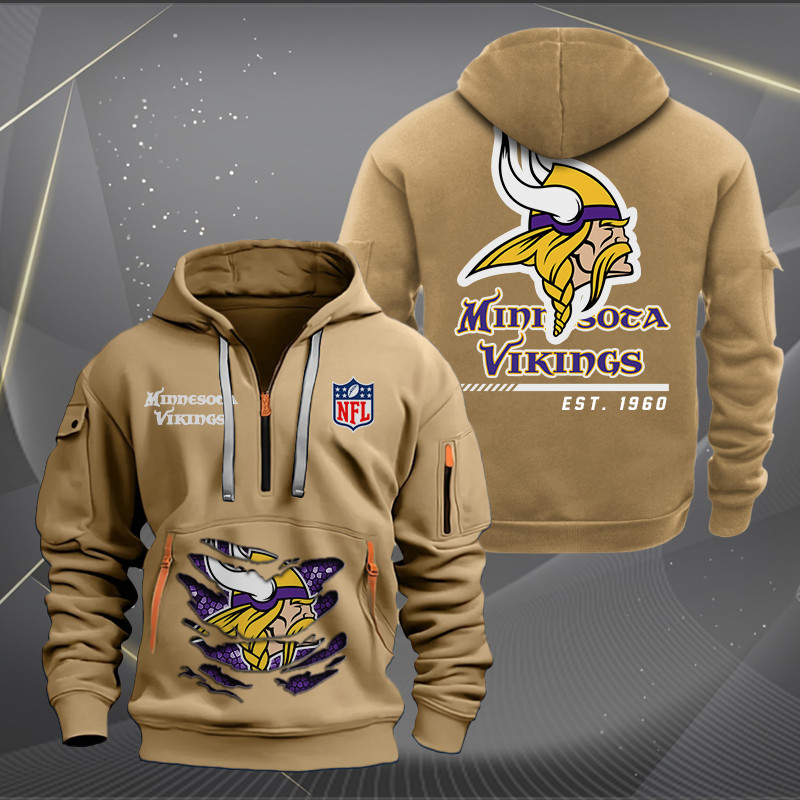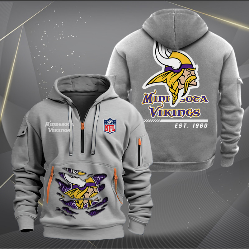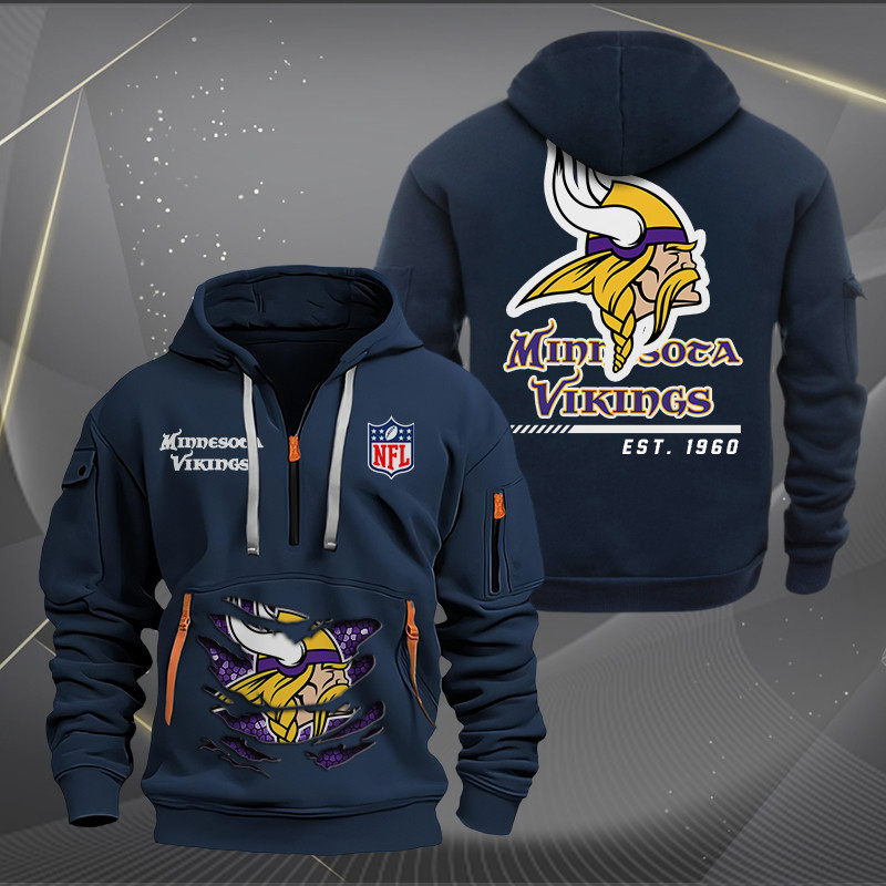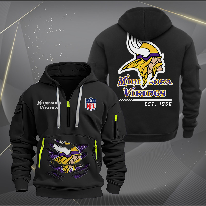 Minnesota Vikings Monster Scratch 2 Logo NFL Quarter Zip Hoodie