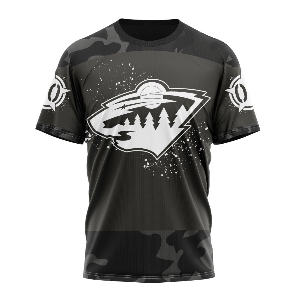 Minnesota Wild Special Black Camo Design For Veterans Day Personalized Name And Number T-Shirt