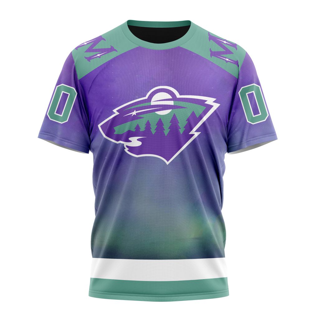 Minnesota Wild Special Northern Lights Design 02 Personalized Name And Number T-Shirt