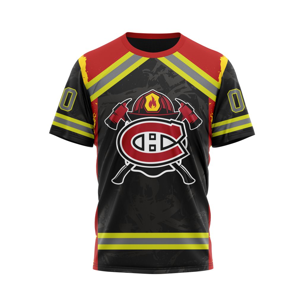 Montreal Canadiens Honnor Firefighter Personalized Name And Number T-Shirt