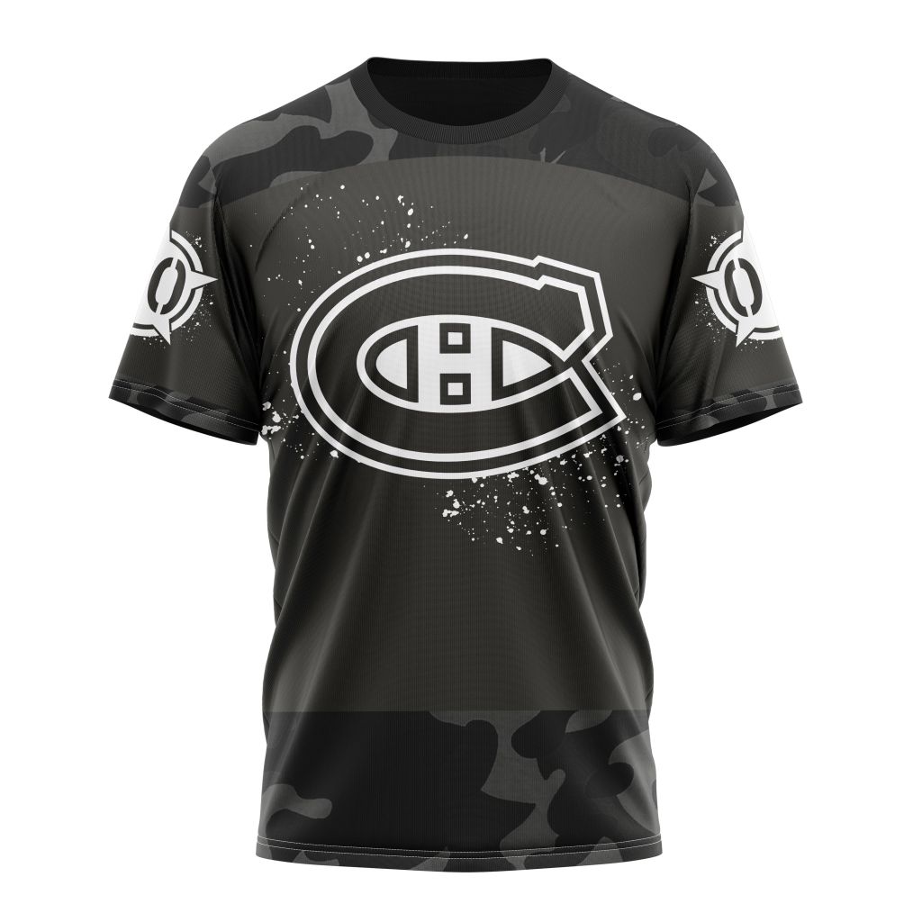 Montreal Canadiens Special Black Camo Design For Veterans Day Personalized Name And Number T-Shirt