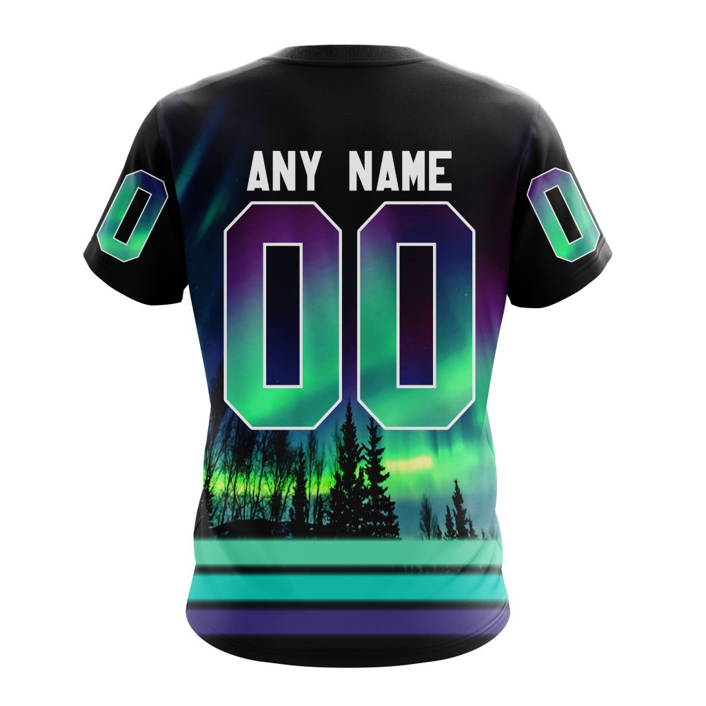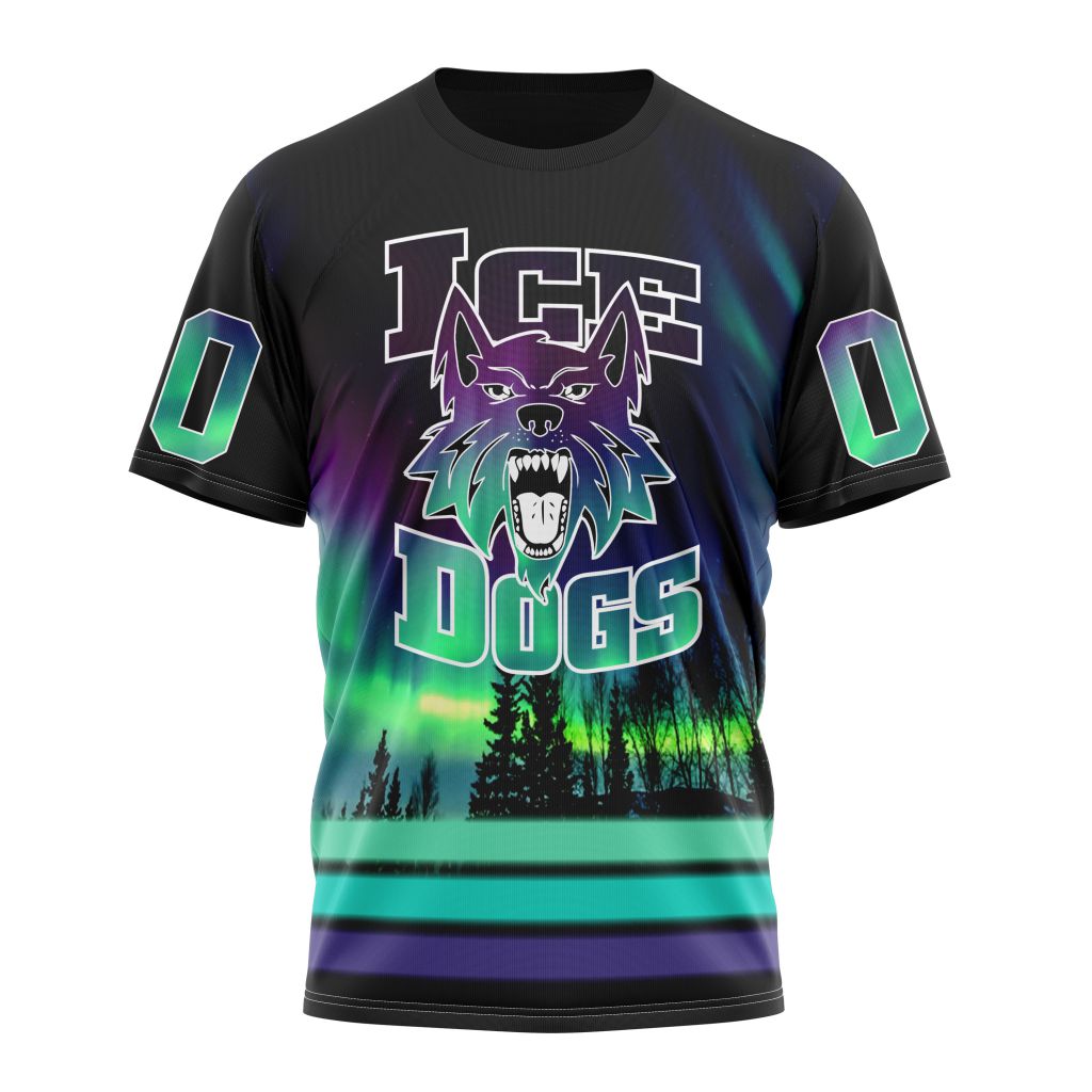 NAHL Fairbanks Ice Dogs With Northern Lights Personalized Name And Number T-Shirt