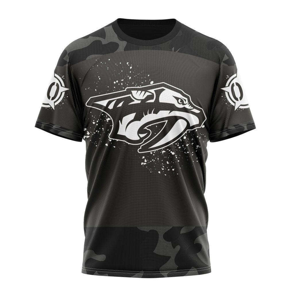 Nashville Predators Special Black Camo Design For Veterans Day Personalized Name And Number T-Shirt
