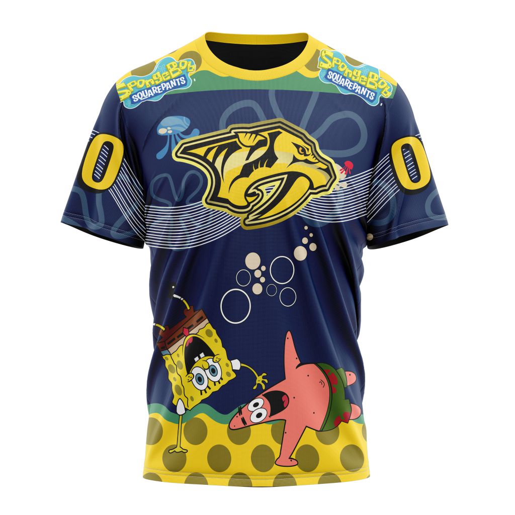 Nashville Predators With SpongeBob Personalized Name And Number T-Shirt
