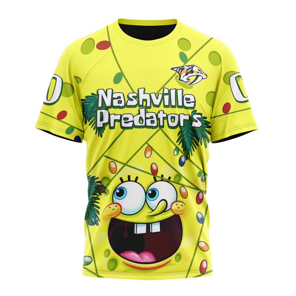 Nashville Predators With SpongeBob Personalized Name And Number T-Shirt