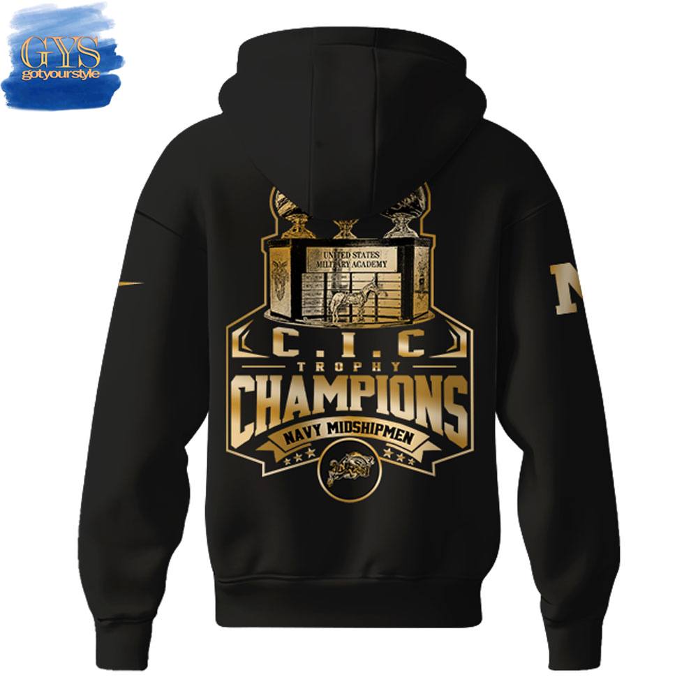 Navy Midshipmen NCAA CIC Trophy Champions Gold Black Hoodie