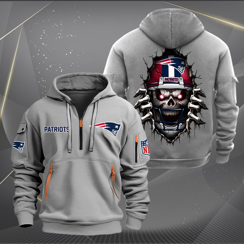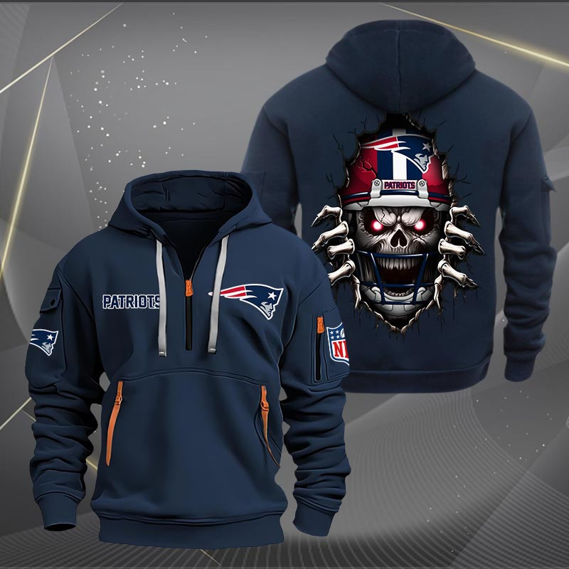 New England Patriots Football Player Skull Quarter Zip Hoodie