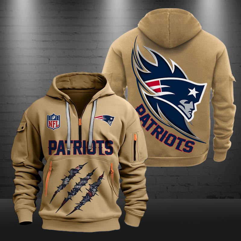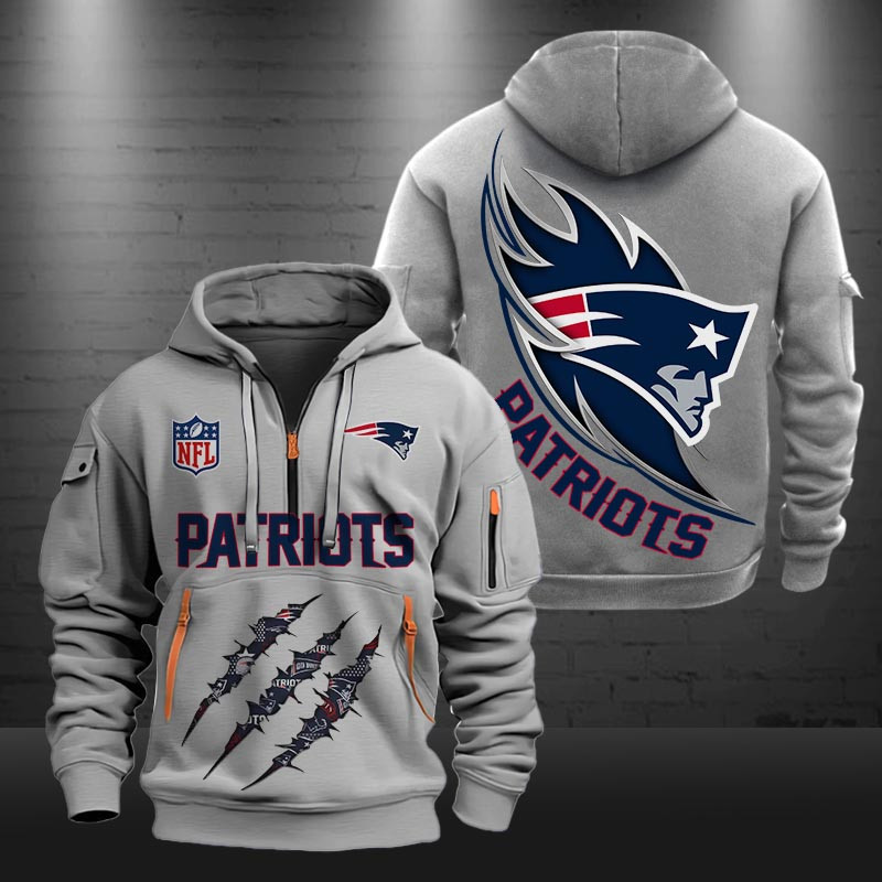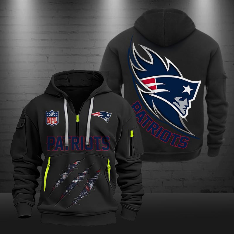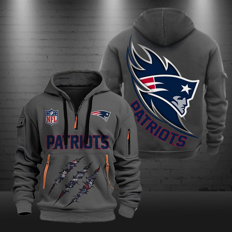 New England Patriots Monster Scratch Logo NFL Quarter Zip Hoodie