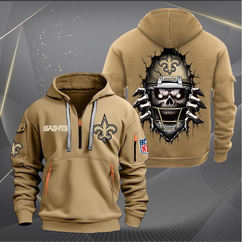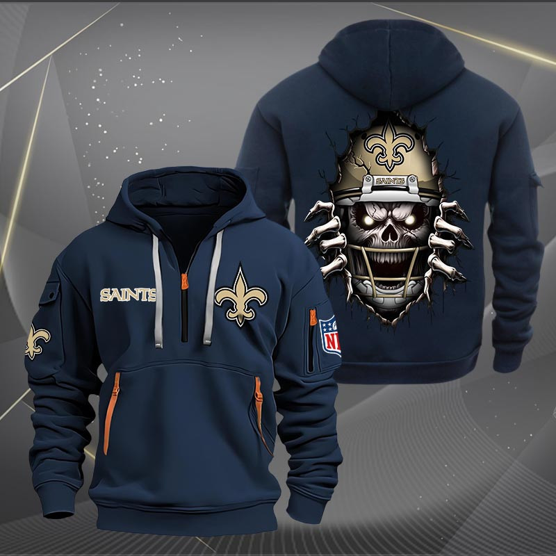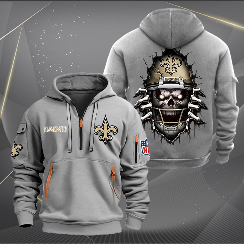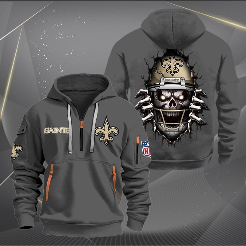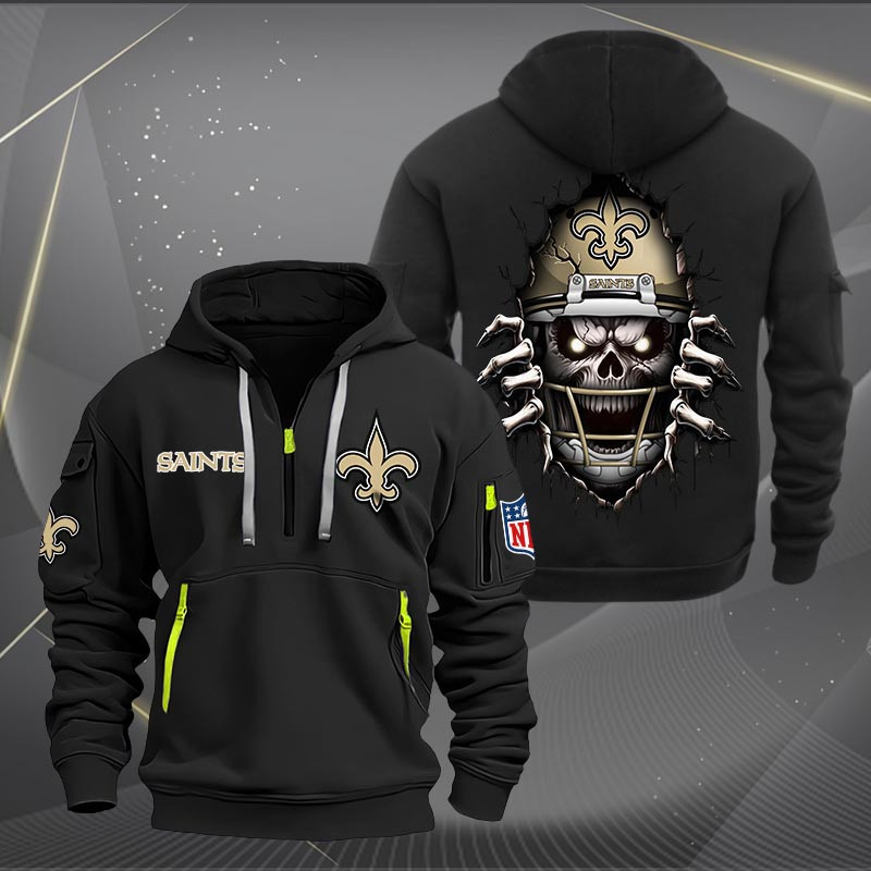 New Orleans Saints Football Player Skull Quarter Zip Hoodie