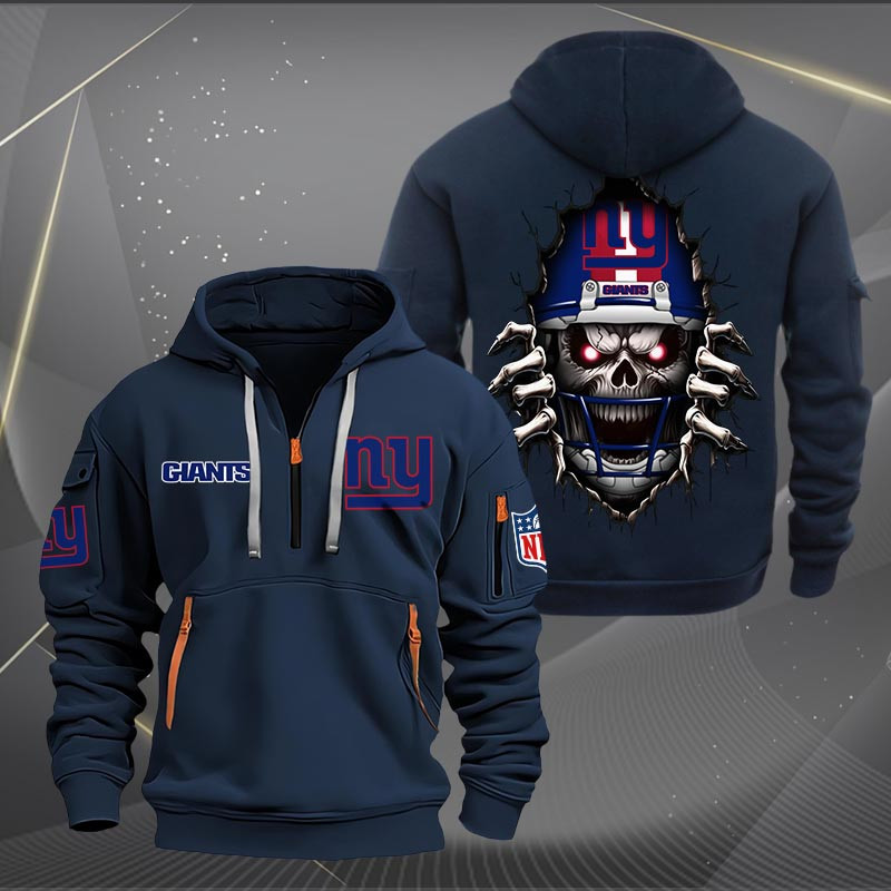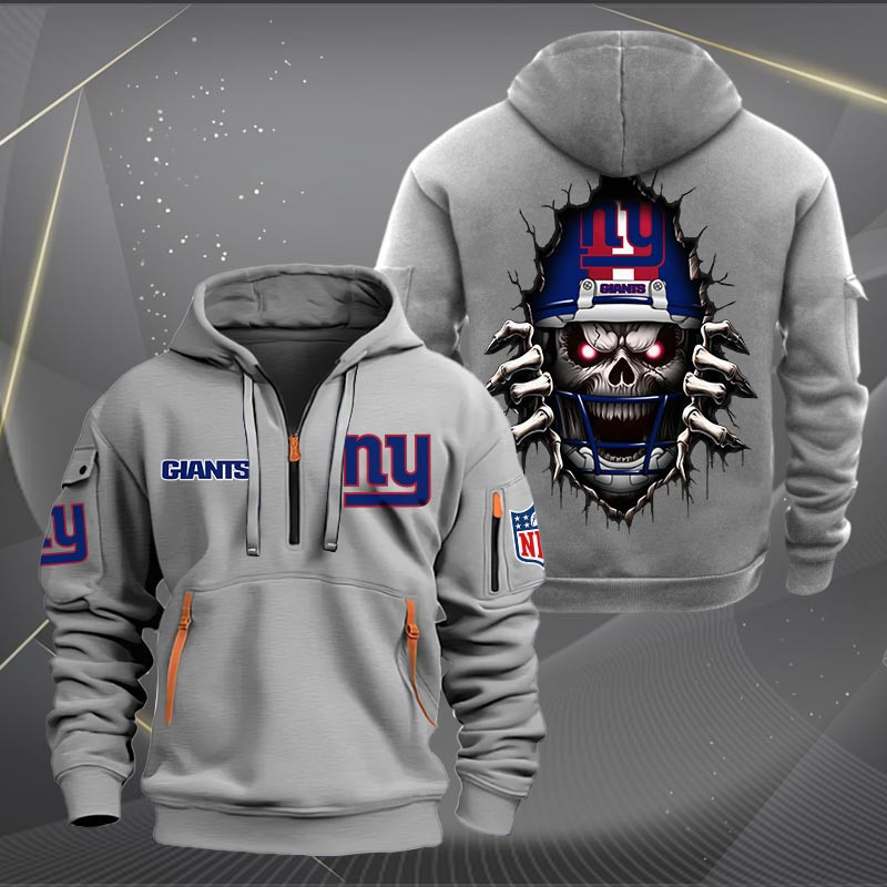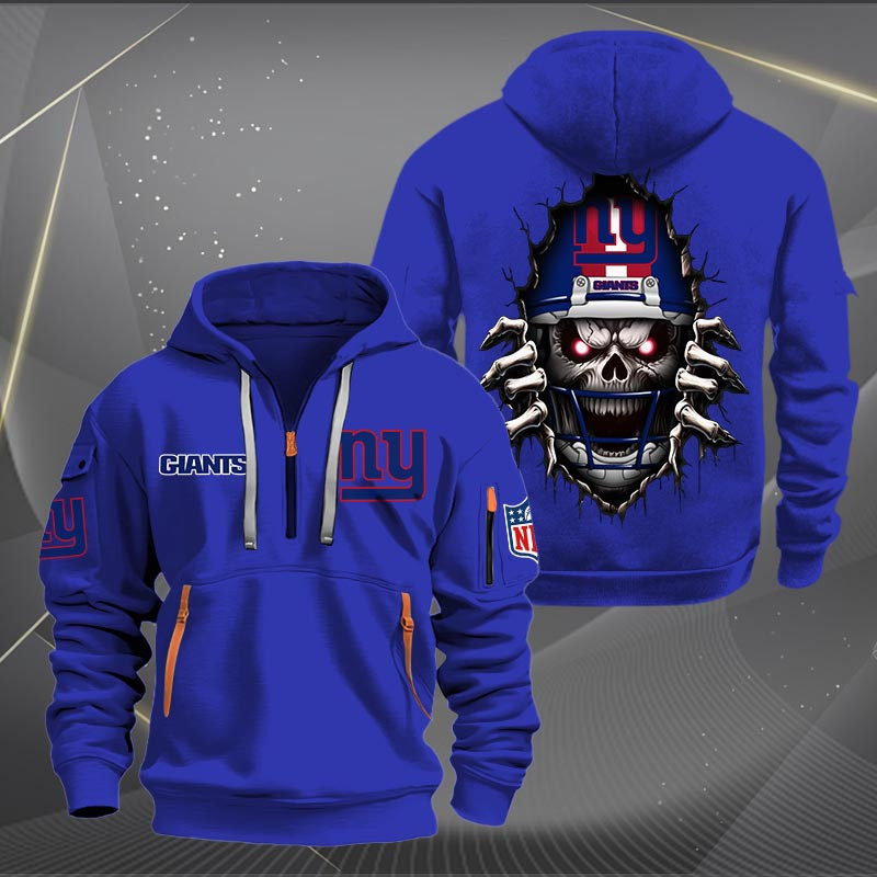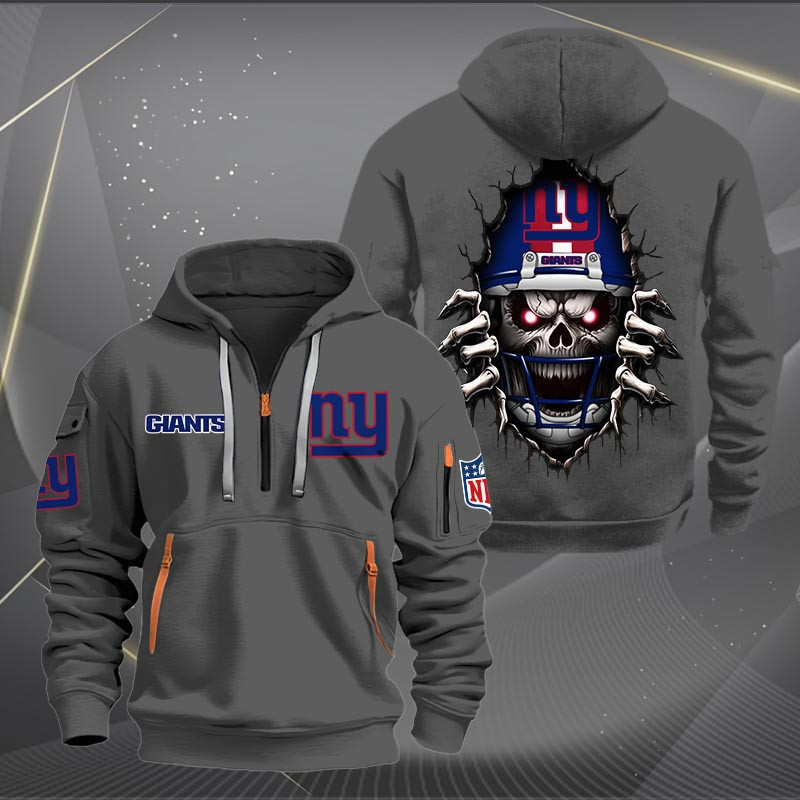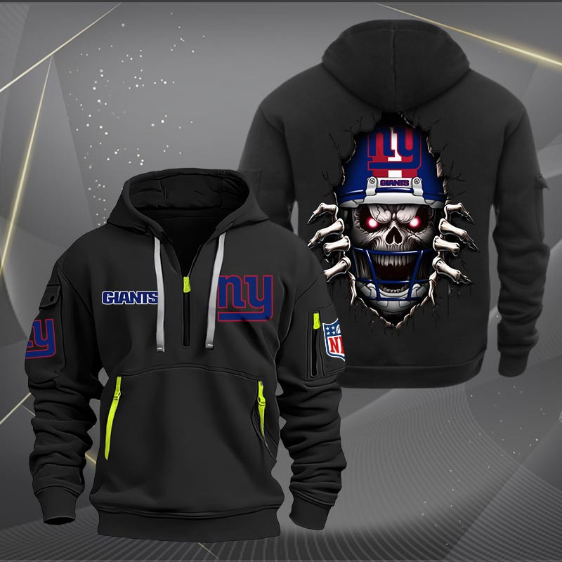 New York Giants Football Player Skull Quarter Zip Hoodie