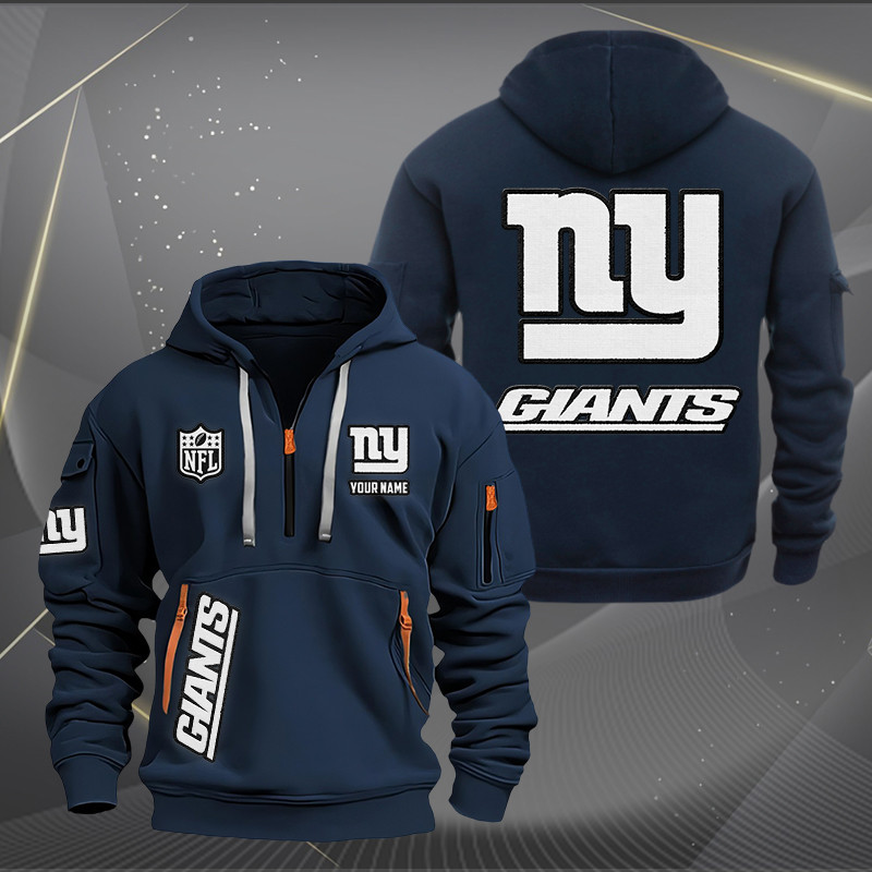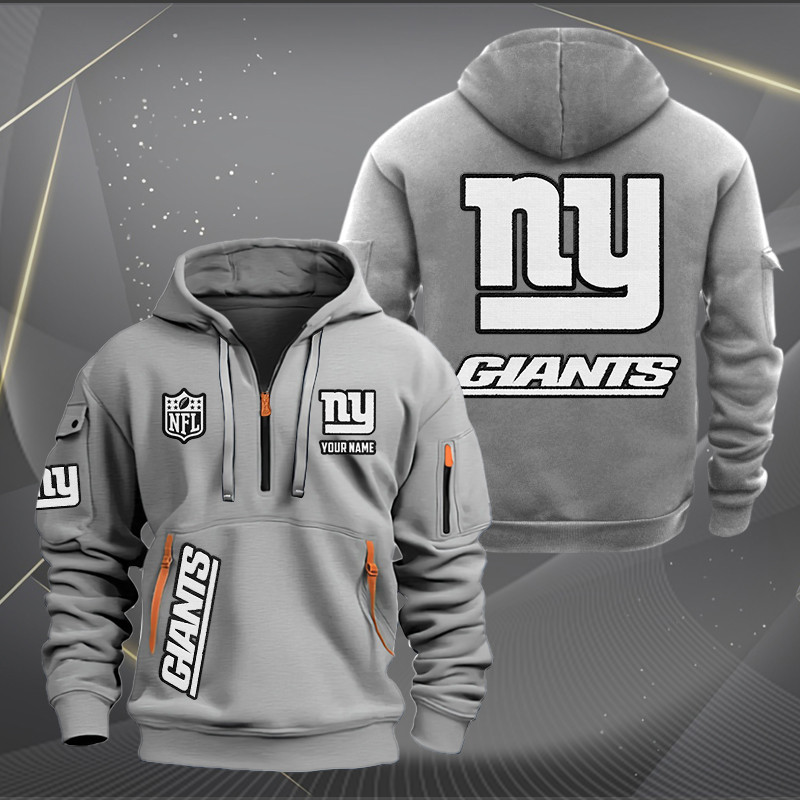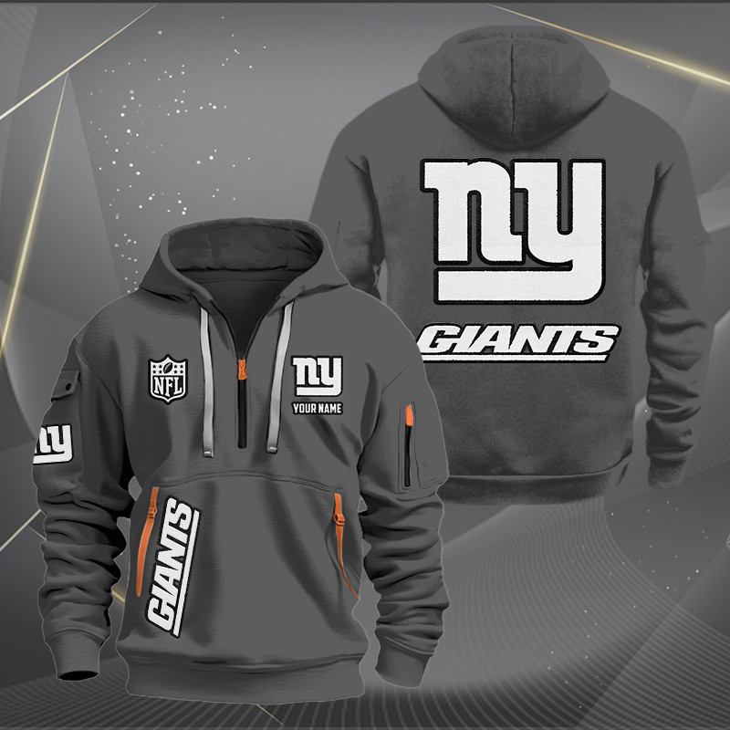 New York Giants White Logo NFL Quarter Zip Hoodie