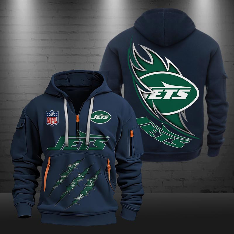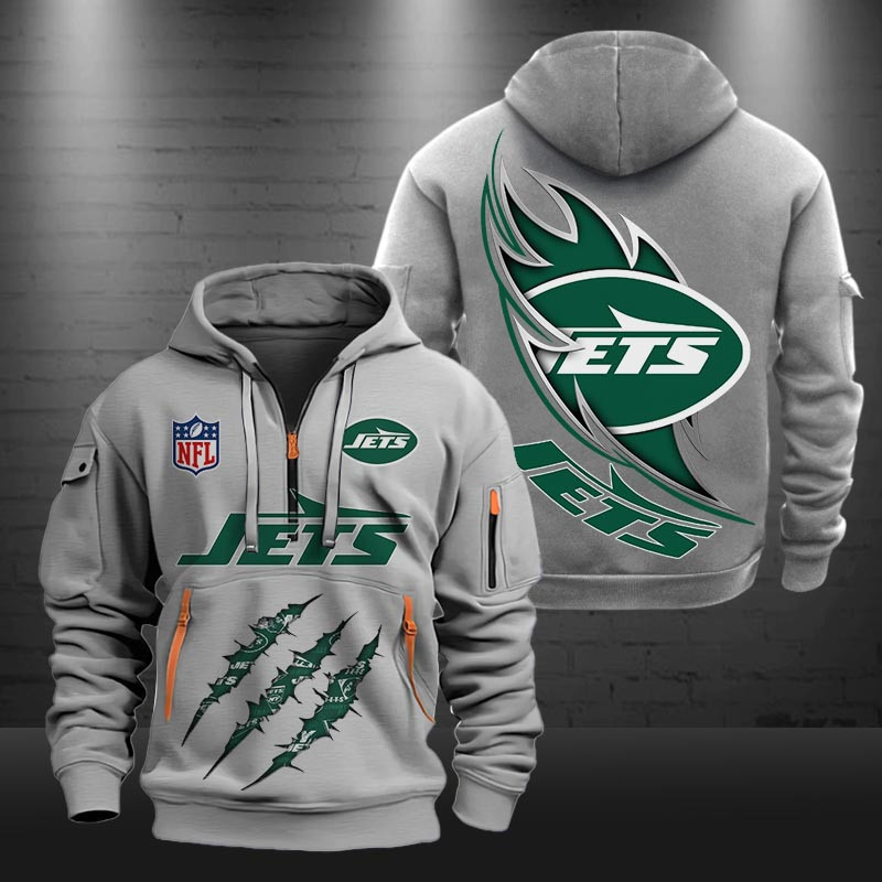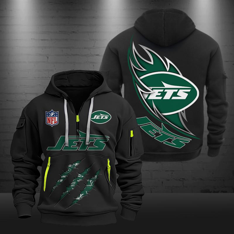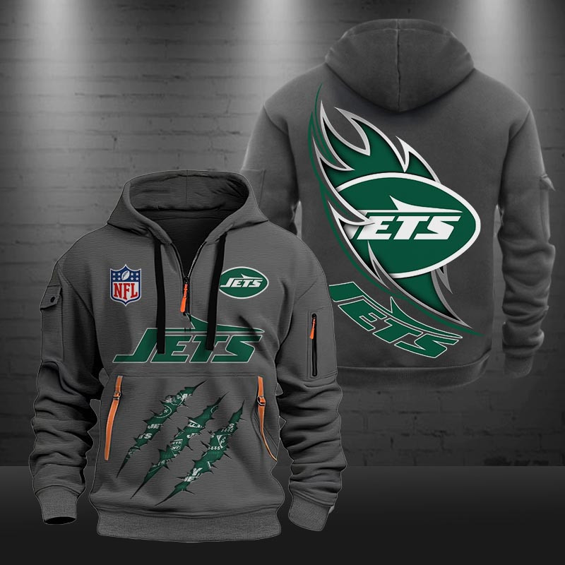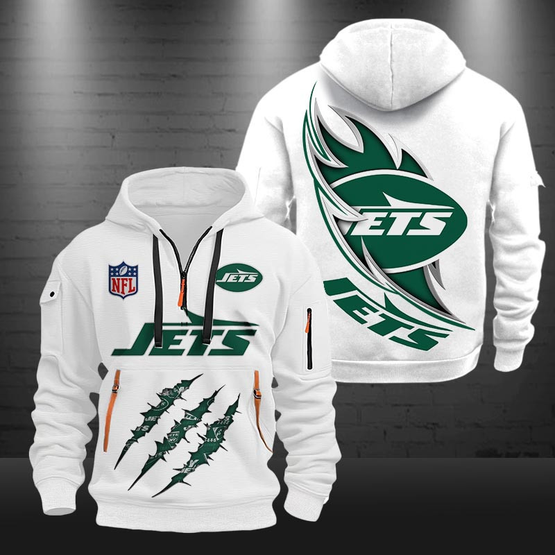 New York Jets Monster Scratch Logo NFL Quarter Zip Hoodie
