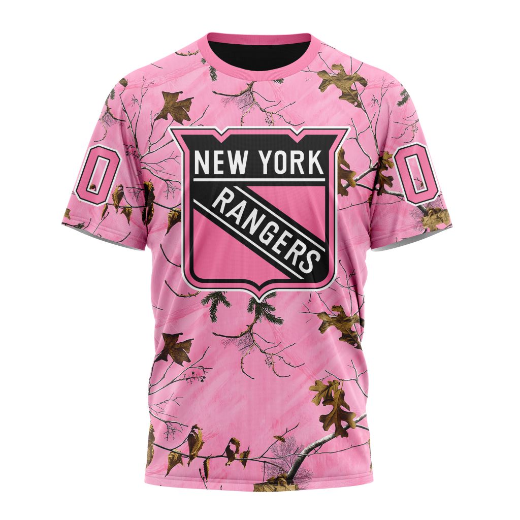 New York Rangers Special Realtree Pink Camouflage Design 01 Personalized Name And Number T-Shirt