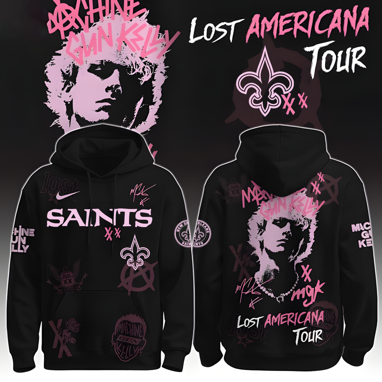 Buildercar – Newcastle United Orleans Saints X NFL MGK Lost Americana Tour 2025 Machine Gun Kelly Hoodie T-Shirt