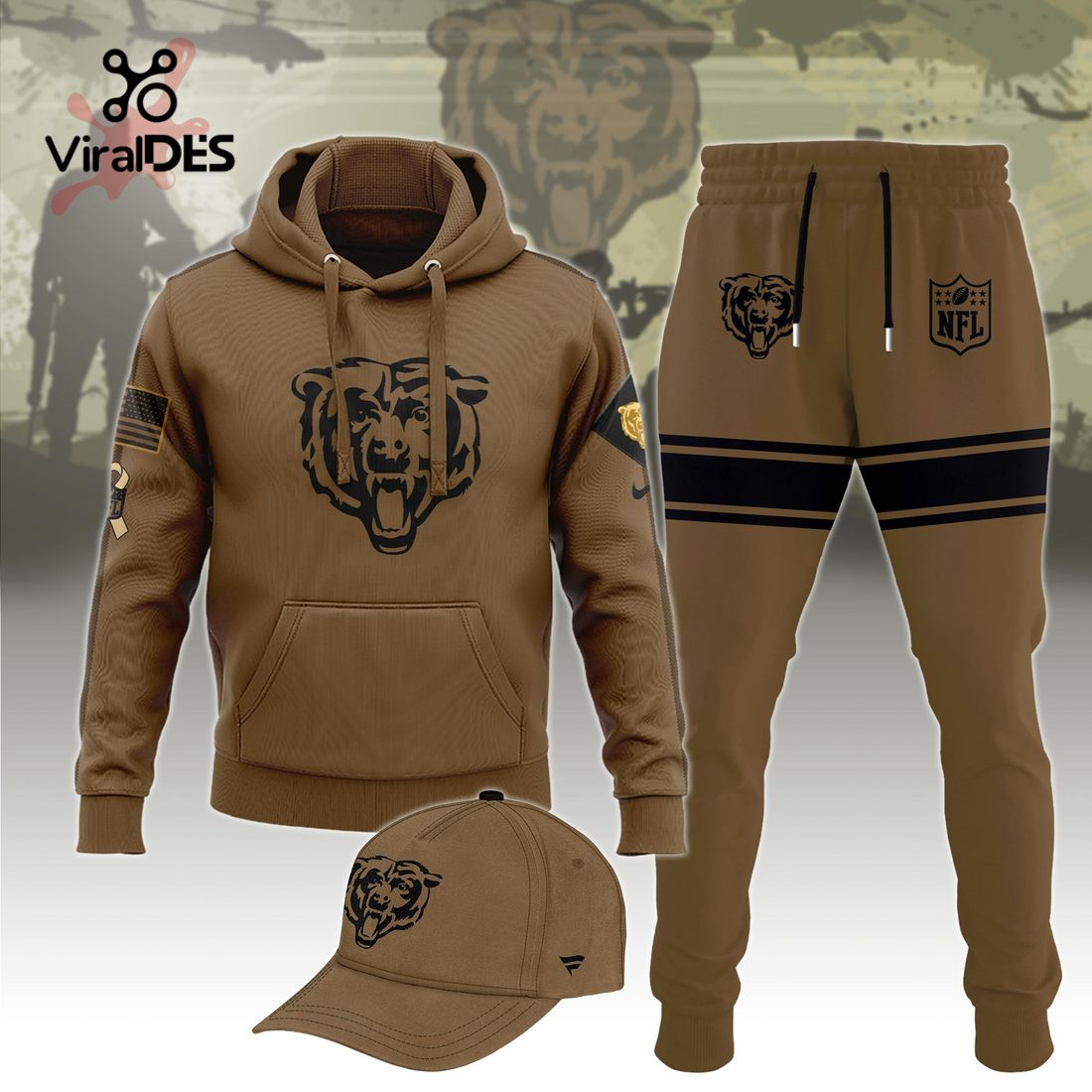 NFL Chicago Bears Basic Brown Sport Hoodie Sweatpant Tracksuit (Non Cap)