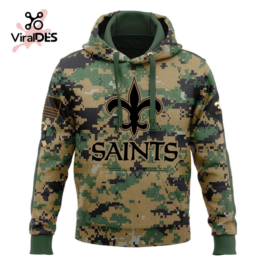 NFL New Orleans Saints Army Camo Sport Hoodie Sweatpant Tracksuit (Non Cap)
