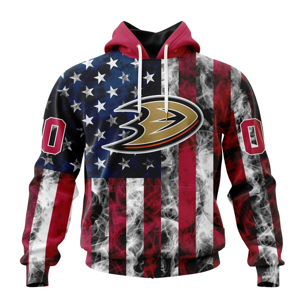 NHL Anaheim Ducks Awesome Design For Independence Day The Fourth Of July Custom Name and Number Hoodie