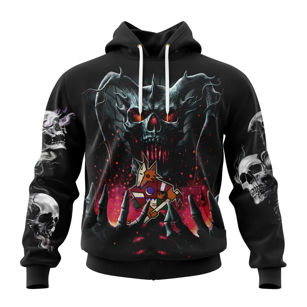 NHL Arizona Coyotes Awesome Skull Art Design Custom Name and Number Hoodie