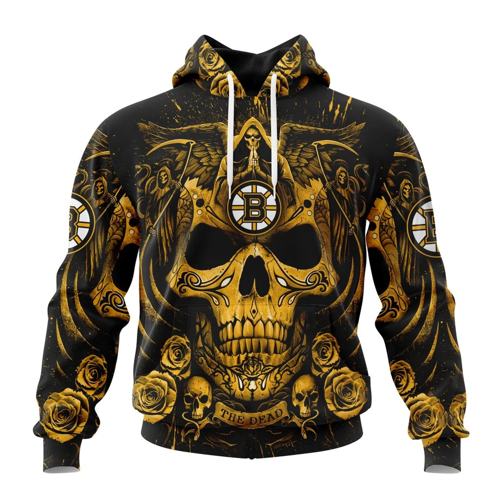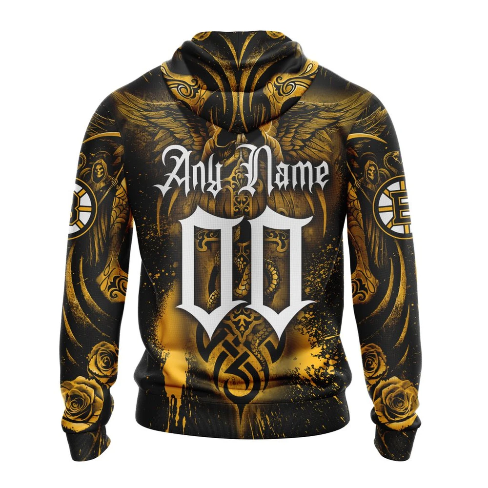NHL Boston Bruins Awesome Design With Skull Art Custom Name and Number Hoodie
