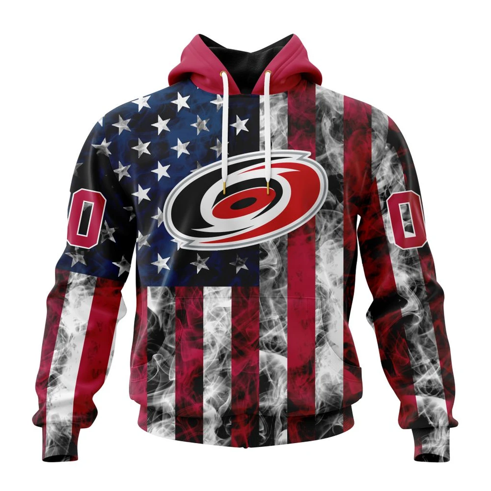 NHL Carolina Hurricanes Awesome Design For Independence Day The Fourth Of July Custom Name and Number Hoodie