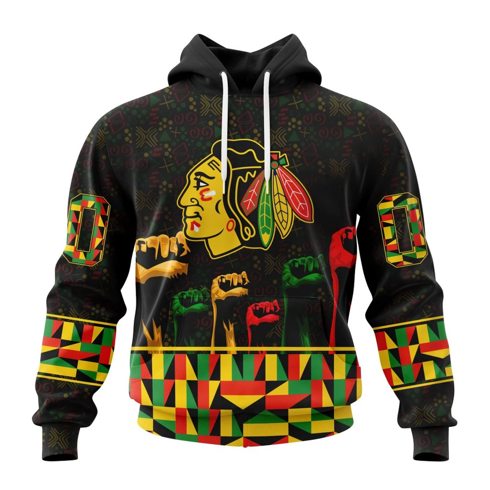 NHL Chicago Blackhawks Awesome Design Celebrate Black History Month Custom Name and Number Hoodie