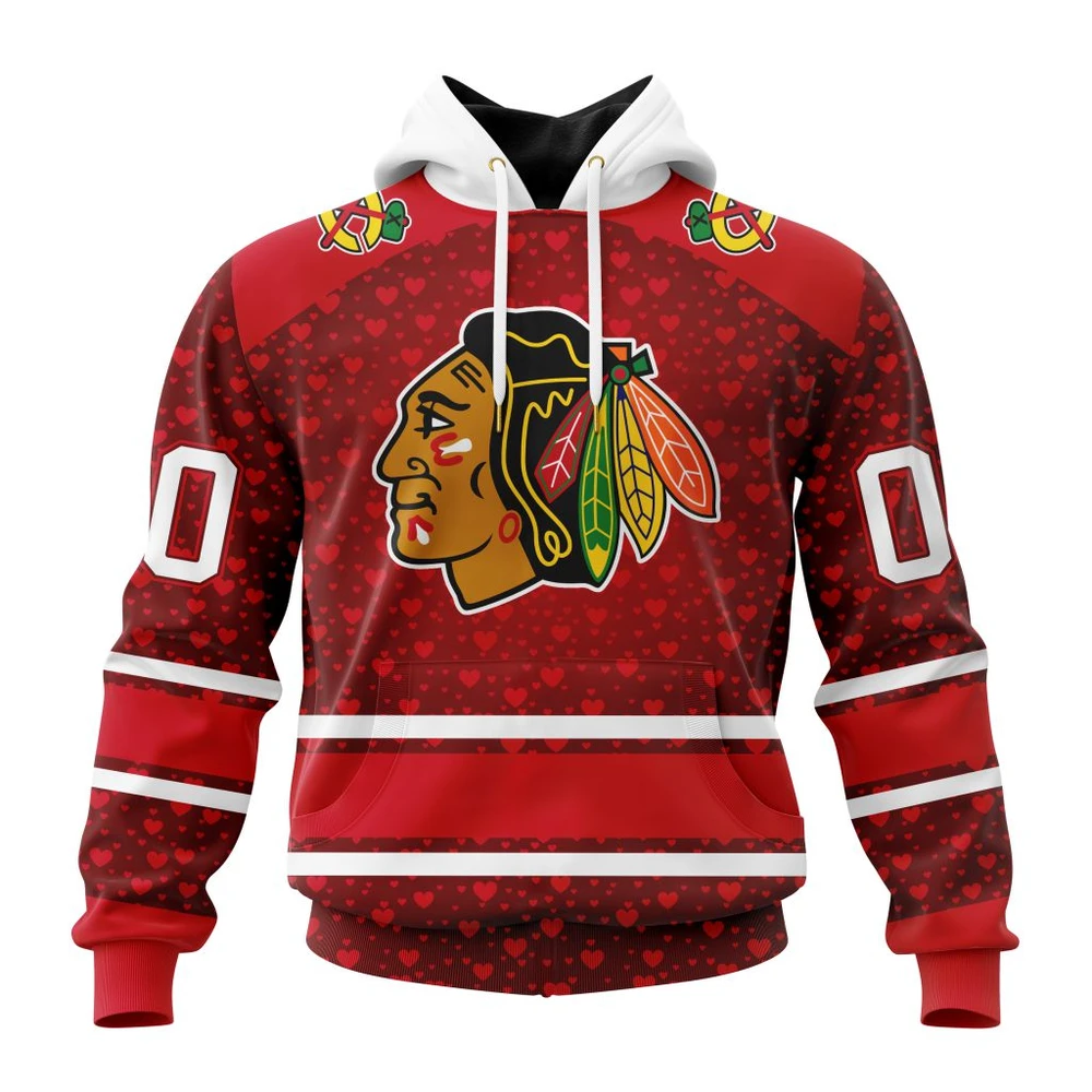 NHL Chicago Blackhawks Awesome Gift For Valentines Day Custom Name and Number Hoodie Style 319