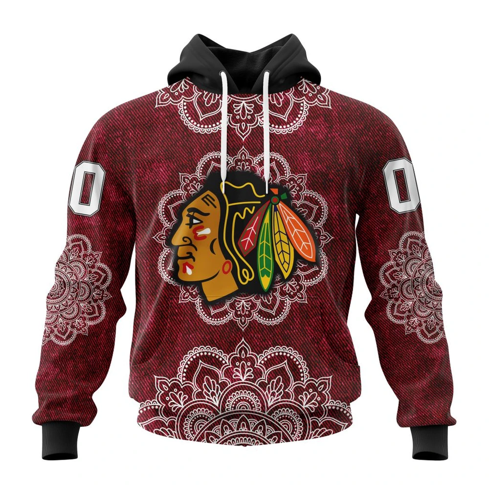 NHL Chicago Blackhawks Mandala Custom Name and Number Hoodie