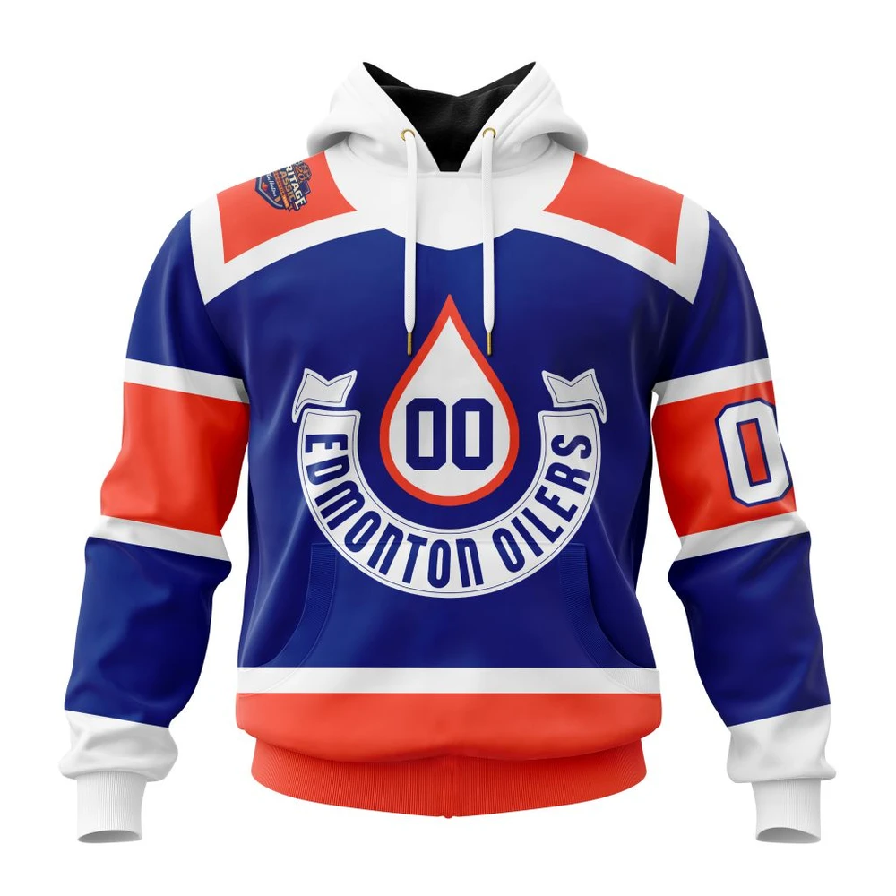 NHL Edmonton Oilers Blue Heritage Classic Custom Name and Number Hoodie