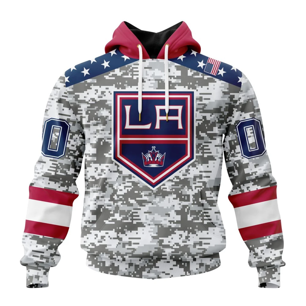 NHL Los Angeles Kings Awesome Camo Design For Veterans Day Custom Name and Number Hoodie Style 192