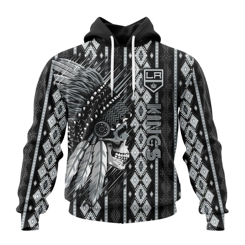 NHL Los Angeles Kings Awesome Skull Native Design Custom Name and Number Hoodie