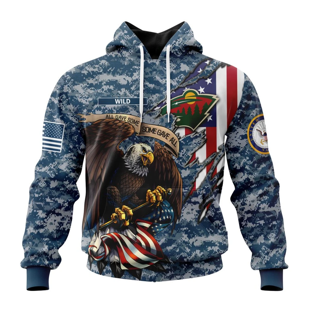 NHL Minnesota Wild Honor Us Navy Veterans Custom Name and Number Hoodie
