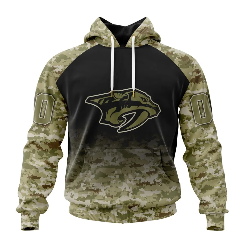 NHL Nashville Predators Awesome Camo Design For Veterans Day Custom Name and Number Hoodie Style 156