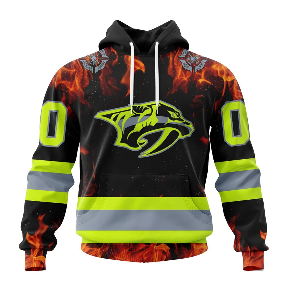 NHL Nashville Predators Awesome Design Honoring Firefighters Custom Name and Number Hoodie