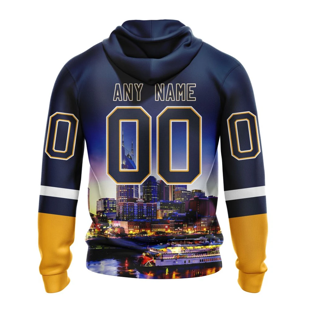 NHL Nashville Predators Awesome Design With City Skyline Custom Name and Number Hoodie