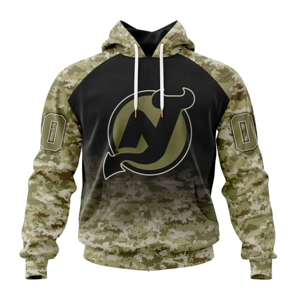 NHL New Jersey Devils Awesome Camo Design For Veterans Day Custom Name and Number Hoodie Style 158