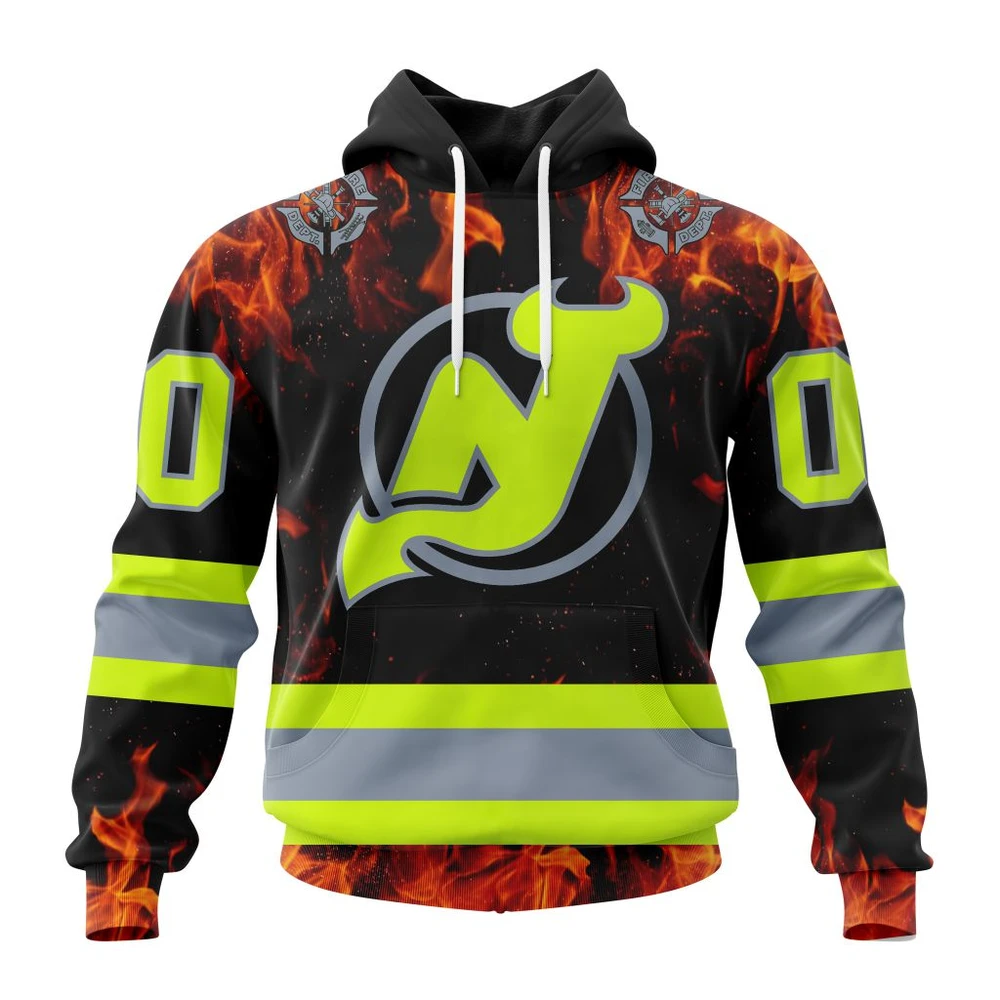 NHL New Jersey Devils Awesome Design Honoring Firefighters Custom Name and Number Hoodie