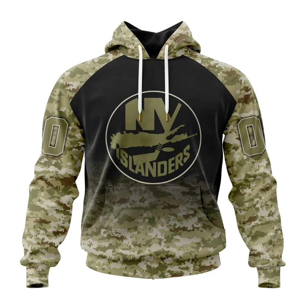 NHL New York Islanders Awesome Camo Design For Veterans Day Custom Name and Number Hoodie Style 168