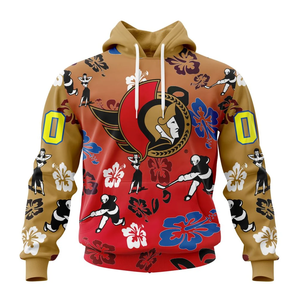 NHL Ottawa Senators X Hawaii Design For Hawaiia Custom Name and Number Hoodie