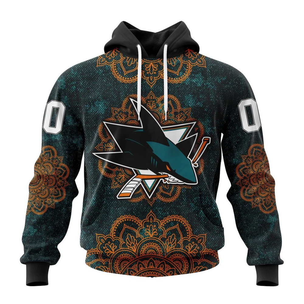 NHL San Jose Sharks Mandala Custom Name and Number Hoodie