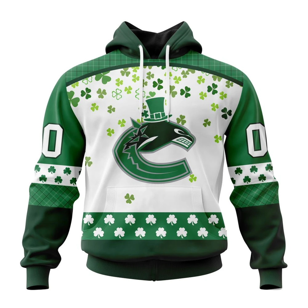 NHL Vancouver Canucks Awesome Design For St. Patrick Day Custom Name and Number Hoodie