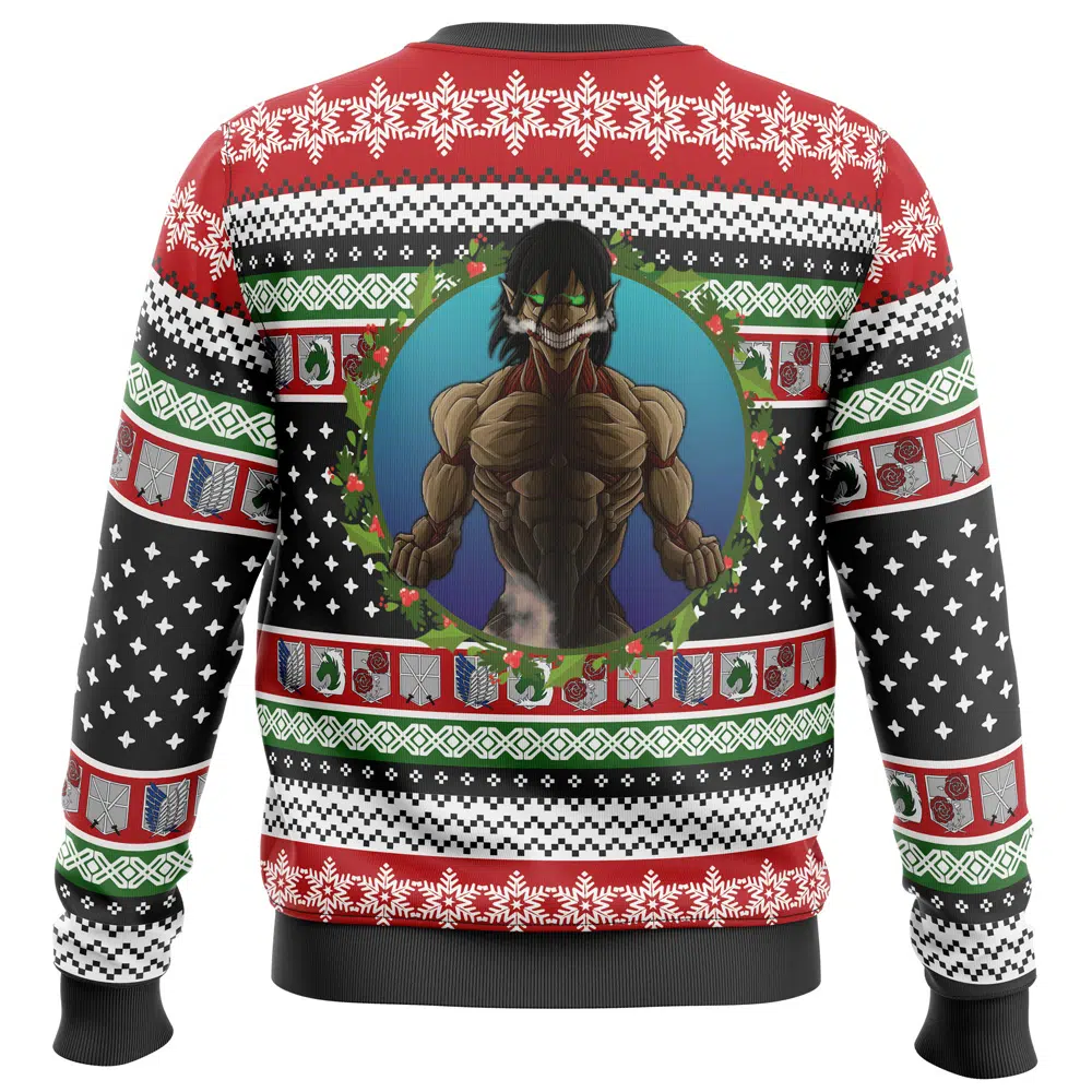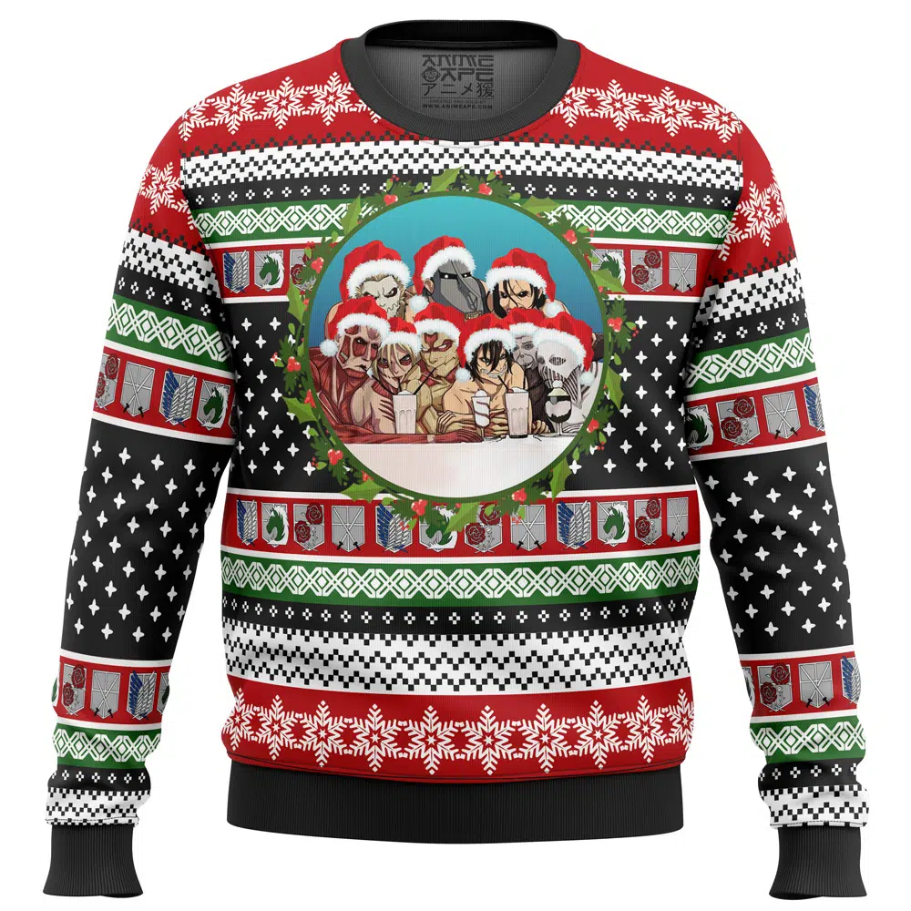 Buildercar – Nine Titans Attack on Titan Ugly Christmas Sweater Turn Heads This Holiday with Anime Ape’s Exclusive Ugly Christmas Sweater