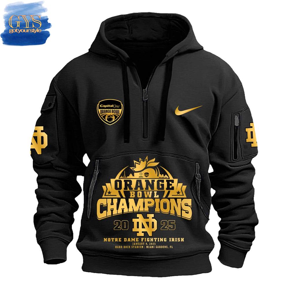 Notre Dame NCAA Orange Bowl Champions 2025 Quarter Zip Hoodie