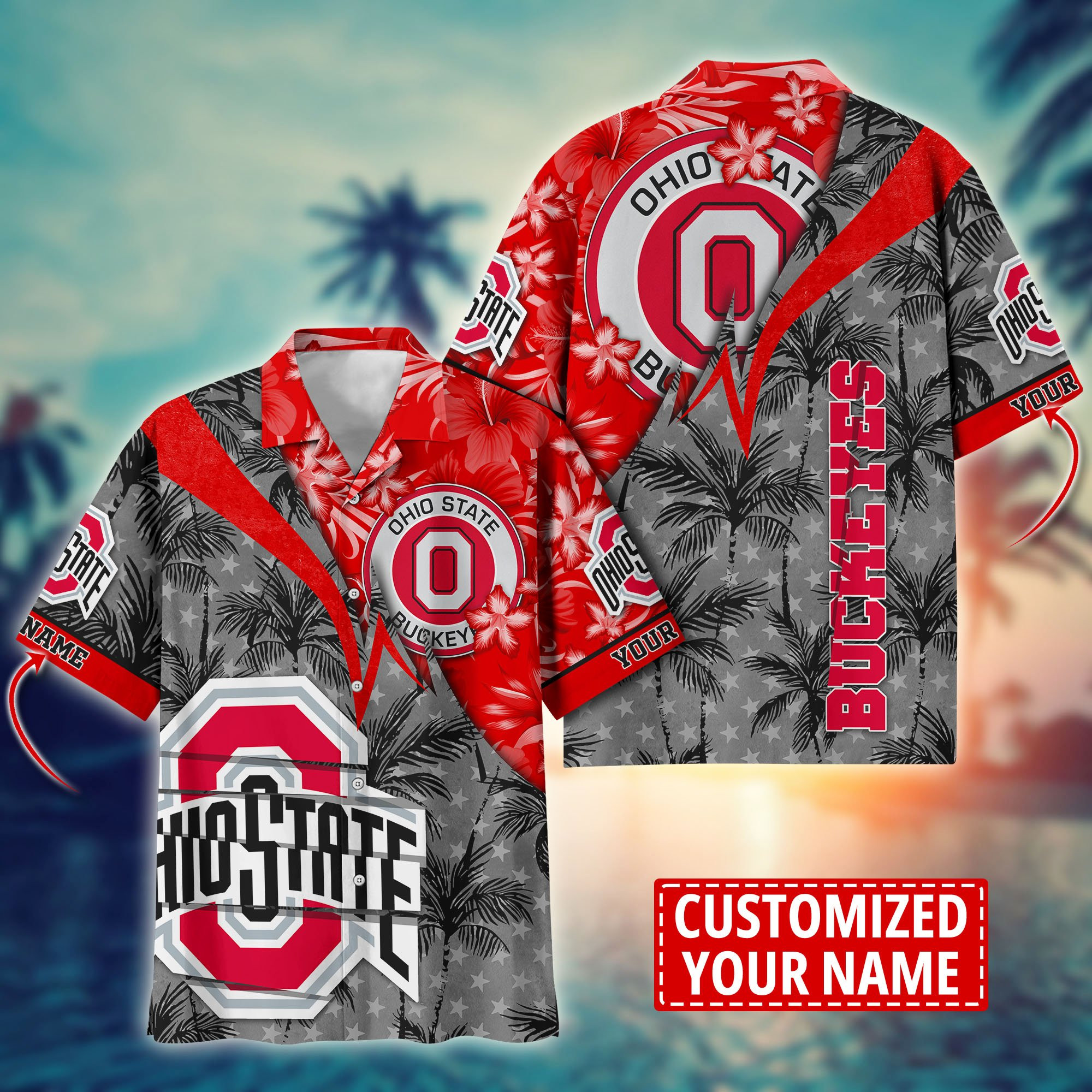 Ohio State Buckeyes Customized Name Gray Color Hawaiian Shirt