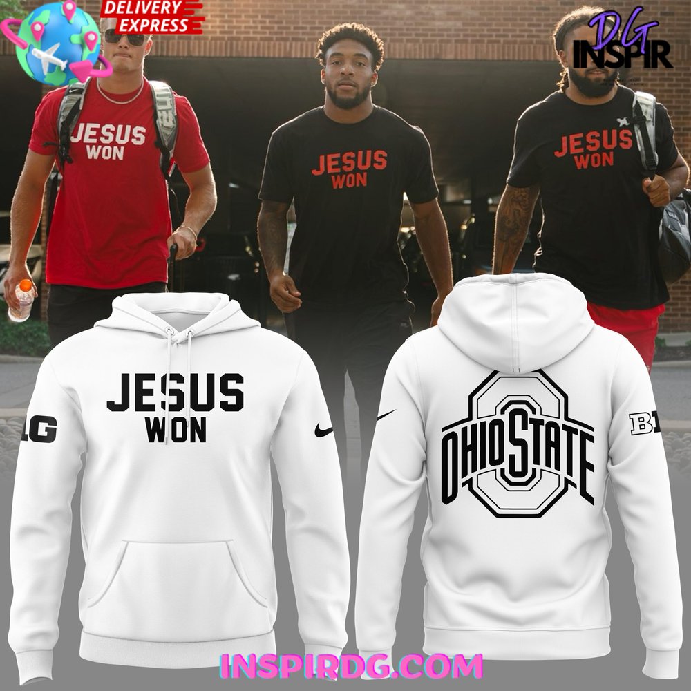 Ohio State Buckeyes Jesus Won 2025 White Sweatshirt Hoodie