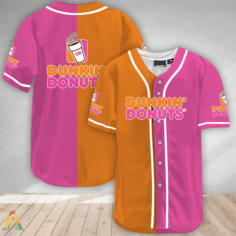 Orange And Pink Split Dunkin Donuts Baseball Jersey