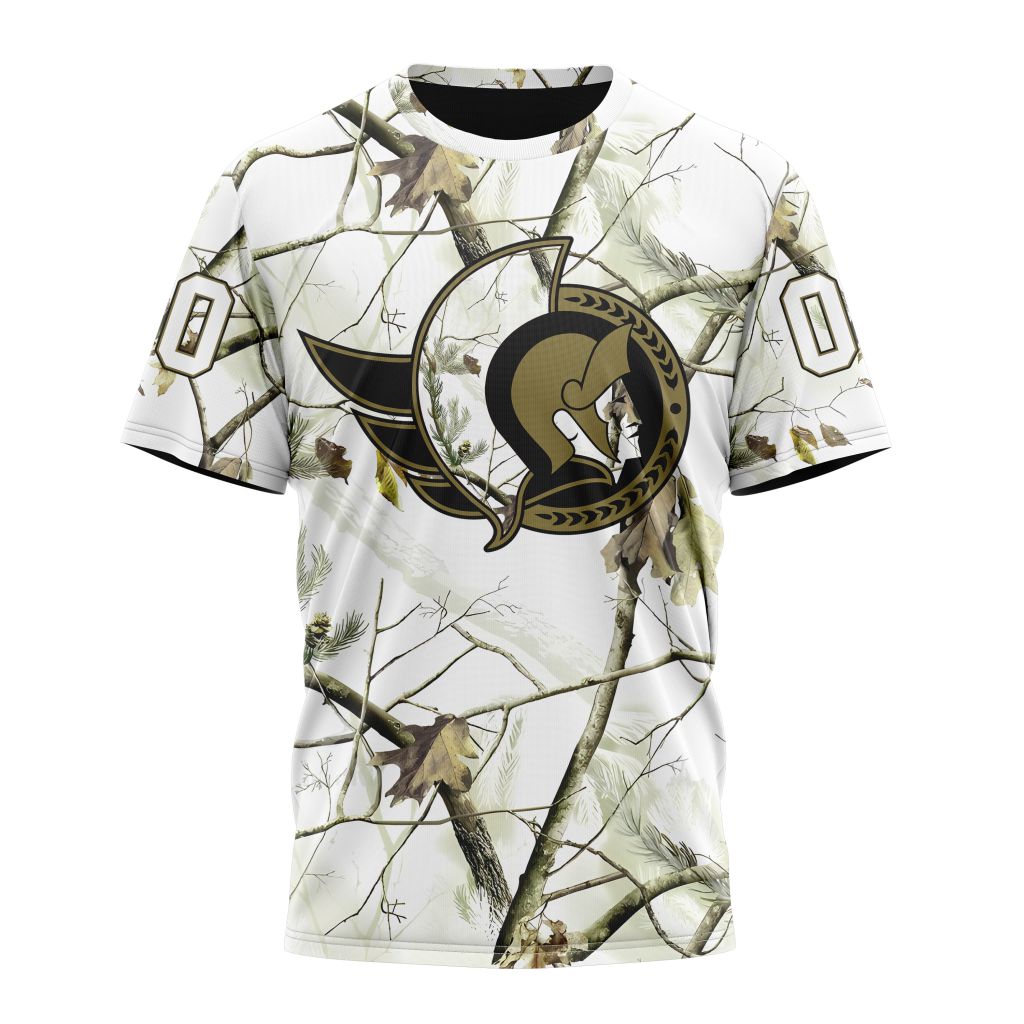 Ottawa Senators Special White Winter Hunting Camo Design Personalized Name And Number T-Shirt